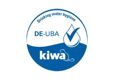 (البلاستيك ومياه الشرب) – تمنحها وزارة البيئة الألمانية UBA، وتؤكد أن المواد البلاستيكية المستخدمة في أنظمة المياه لا تطلق أي مواد سامة أو ضارة بالصحة.
